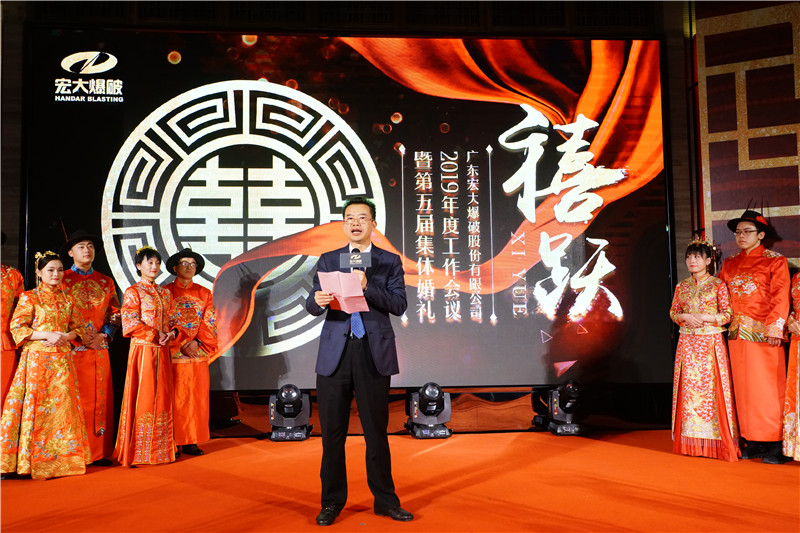 On January 16, 2019, the 11th lunar month, the fifth collective wedding of Guangdong Hongda Blasting Co., Ltd. with the theme of "Jubilee Leap" was opened at the foot of Yunshan Mountain beside the Pearl River in Guangzhou. On the occasion of the company's 30th anniversary celebration, 30 pairs of 15 new employees dressed in Chinese style red Xiuhe costumes were adorned with the harmonious sound of the qin and se. The verdant mountains and flowing pearl waters create a bond of love, and this will be the place where their love verification begins.