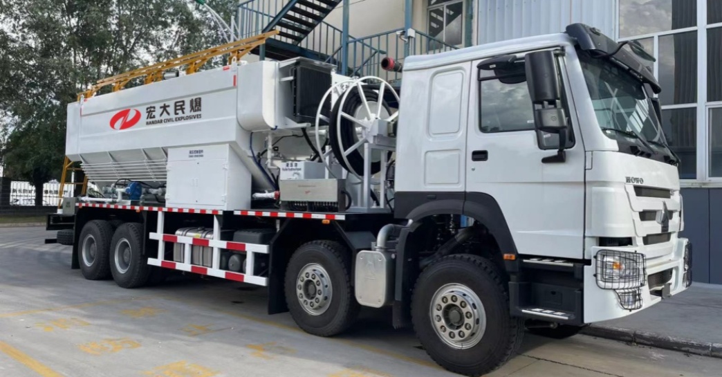 Utilizing a series of modular mixed explosive vehicles, using on-site mixing or remote distribution methods, to carry out explosive loading and blasting operations for large and medium-sized blasting projects. Compared with packaged explosives, mixed expl