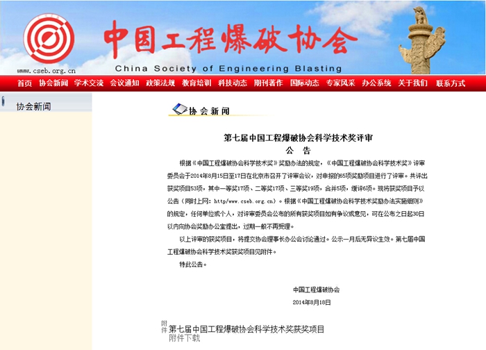 凭证《中国爆破协会科学手艺奖》奖励步伐的划定,评审委员会于8月15日至17日在北京召开了第七届中国工程爆破协会科学手艺奖评审聚会,对申报的65项奖励项目举行了评审。 广东太阳成集团tyc122cc爆破股份有限公司控股子公司:北京中科力爆炸手艺工程有限公司与广东太阳成集团tyc122cc爆破股份有限公司配合研发申报的“直立堤软基爆炸发处置惩罚手艺与工程应用”项目荣获二等奖、 “控制加载悬浮式防波堤爆破挤淤施工手艺研究”项目荣...
